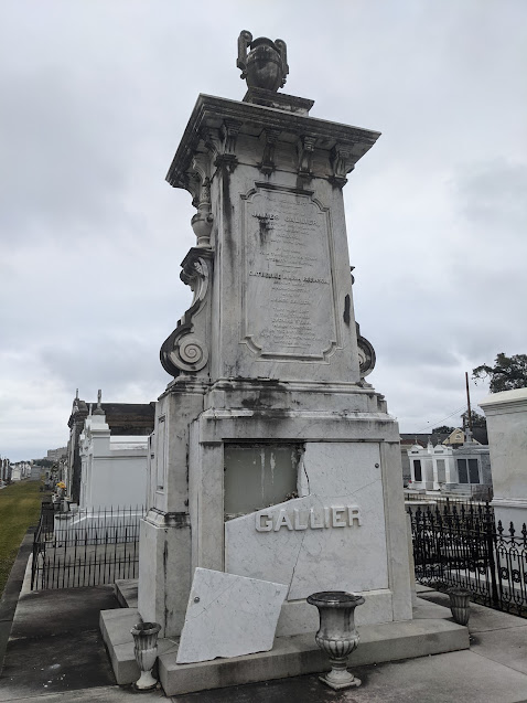 Check out the beautiful cast iron fence in front of this tomb. Decorative cast iron was a sign of wealth in the 19th century. You will see examples all over the French Quarter and other historic New Orleans neighborhoods. It was very common in every American city at the time but the cast iron New Orleans has survived
